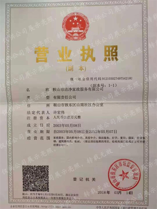 鞍山市潔凈家政公司成立于一九九九年,是一家家政服務項目齊全就業崗位多樣化的綜合性中介機構。自成立以來,在各級領導的大力支持下,在全體員工的共同努力下,曾先后分別榮獲市政府“再就業文明”稱號,市勞動就業局再就業“光榮單位”,市就業局“十佳單位”,遼寧省個體勞動“光彩之星”等殊榮。